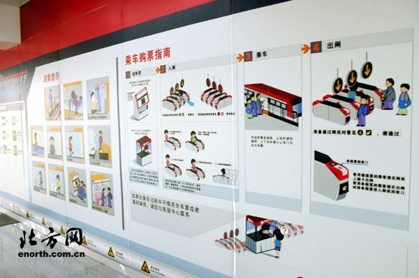 地铁1号线每座车站出入口通道的墙壁上都用卡通画的形式告知乘客乘车注意事项和安全指南