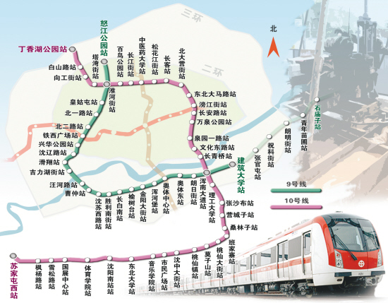 根据建设时序安排,沈阳市计划今年开工建设地铁九号线和十号线(丁香公园-张沙布),预计2017年建成;2014年开工建设地铁十号线(张纱布-苏家屯西),预计2018年建成。相关报道见A3版
