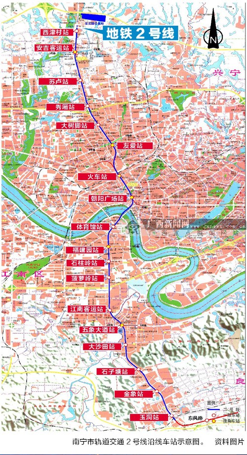 4月8日,记者从南宁市民政局获悉,为配合南宁轨道交通工程近期规划的实施,南宁市民政局提出《南宁市轨道交通2号线沿线车站命名方案》,并予以公示。记者查看《方案》时发现,与此前公布的南宁市轨道交通2号线工程(玉洞-西津)可行性研究报告相比,设置的车站由16座增至18座,新增了友爱站和石柱岭站。此外,2号线全线改为地下线,原高架段的车站变更为地下站。