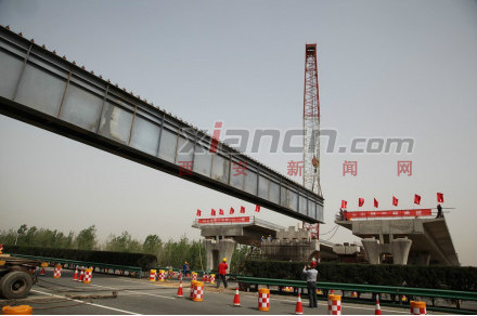 按计划,今日上午完成最后一组钢结构架设之后,施工人员还将对新架设的钢结构进行横向连接。明日18时前,施工人员将在新架设的钢结构桥面上浇筑完成40厘米的混凝土。