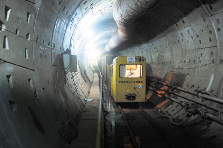 25日,轨道运输车在京广铁路和新中路立交桥下的地铁隧道内运行。余志雄 摄