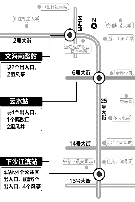 文海南路站、云水站和下沙江滨站,它们就是地铁1号线下沙延伸段的三个站点。昨天这三个让许多人翘首以盼了很久的站点,终于有了消息——