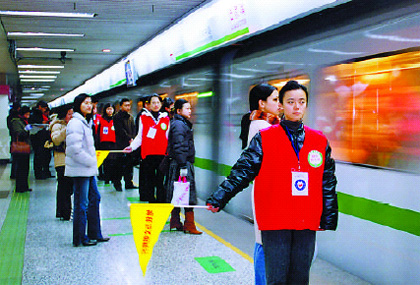 市 每周一至周五的上班高峰时段,在上海轨道交通2号线的陆家嘴站、东昌路站和东方路站都活跃着青年志愿者的身影。他们来自沿途的80多单位,有归国留学生、经理、医生、法官、公务员等,人数已达800多人。