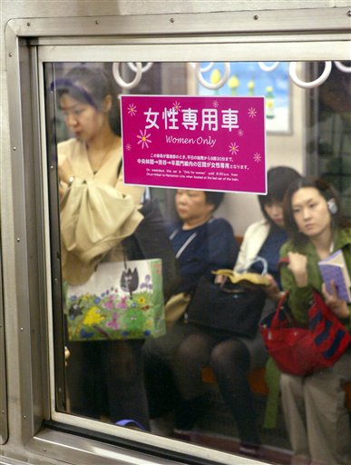 据大洋网消息:日本为了减少女性搭乘地铁时遭色狼非礼的事件,辖区为首都圈的JR东日本和9家私营铁路、东京都交通局从5月9日起在早上上班高峰时间开设女性专用车厢。