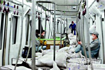 “之所以选择在亮马桥站到三元桥站进行这一行驶试验,是因为这是10号线1期坡度最大的一个区间段,坡度为千分之三十,其实乘客在车内是基本体会不到的,但对于车辆运行很重要。我们今天上午首先模拟的是10号线列车满载后在亮马桥站往三元桥站行驶时,突然发生故障失去全部制动。一列在农展桥的空车前来救援,在后边推动故障车运行。当然,也可以在前方牵引救援。”工作人员介绍说。随后模拟的则是6节编组列车在制动失去三分之一(6节车厢是3动3拖编组)后,故障车还可以在坡上启动并停住车,保持不溜车状态,随后可以“坡起”重新启动车辆运行,最后一直继续运行回终点。记者看到,模拟满载的列车中装了1800个约60公斤一个的大沙袋,加上车内的20多位试验工作人员,就模拟了车辆满载时装有1828个乘客的重量。