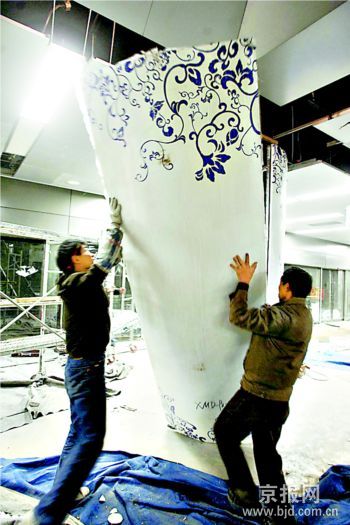 “主题灵感来自于艺术与空间相结合,又同周边的古城墙遗址相协调。我们把青花瓷花瓶上的图案元素提取下来,重新设计了新的花型图案。但具体实施时遇到了些困难,因为国内从来没有过3米高的整体搪瓷钢板,分割成片表现会打破青花瓷图案的美感,最后我们还是坚持让专业人士去研究烧制,才有了如今这么高大的青花瓷柱子。”一位设计师告诉记者:“过些日子,还要给这个站厅设计一面仿古的灰色艺术墙。”
