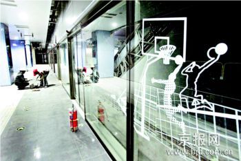 漫步在浅灰色为主的候车站台上,但见菱形吊顶起伏变化错落有致,在两侧射灯的照耀下,产生着丰富的光影变化。28根蓝色大方柱的形状配合吊顶造型微向内侧倾斜,柱身上布满着的一个个抽象运动小人儿,仿佛神气活现地向你招手。屏蔽门上,印满运动者的身姿,做体操的、打篮球的、滑冰的、打乒乓球的、骑自行车的、射箭的、滑雪的……场面热闹之极,让身在地铁内的乘客仿佛已经提前置身于奥运赛场。