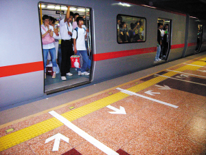 按一节车厢有4个车门计算,八通线每个站台将增加8个候车位,以满足新车需求。由于目前只有一辆新车参与运营,所以乘客在按线候车的时候,需听从站台保安员与行车助理值班员的引导,以免在旧车进站时,因在新增的候车区无法及时上车。