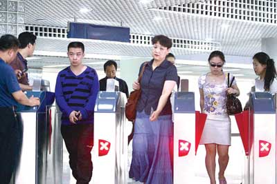 1:不少乘客进、出站时,一直走到检票机前才临时找卡,堵住了其他乘客的路。