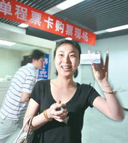 巧合的是,购买第一张人工售出单程卡的刘静,刷的却是市政交通一卡通。“我就是想收藏。”购到票后,她还高兴地展示给丈夫看。其实,不少乘客购买单程票就是为了收藏。