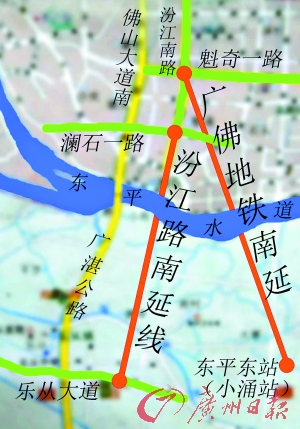 据了解,另一条联通东平水道两岸的道路将是广佛地铁南延线(珠三角城际快速轨道广州至佛山段二期工程)。该项目起点定位东平东站(小涌),终点为魁奇路站后的折返线,项目全长6.352km,均为地下线路,共设置车站四座,由南向北分别为澜石站、体育馆站(世纪莲)、东平新城站、东平东站。其中东平新城为换乘站。据了解,如果广佛地铁南延线于今年下半年顺利开工,将有望于2012年与广佛地铁全线同步建成通车。