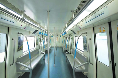 设计:每节车厢内,6张座椅安置两边,每张座椅设计乘坐6人,同时还立有7根扶杆,两侧有数十个拉手