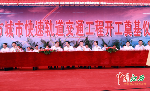 苏荣、吴新雄、王宪魁、傅克诚、尚勇、陈达恒、刘上洋、余欣荣、弘强、蒋如铭、胡振鹏、姚亚平、魏小琴、朱秉发、孙刚、朱张才、陈清华、汤建人等领导为南昌地铁开工奠基培土。奠基仪式由江西省委常委、南昌市委书记余欣荣主持。