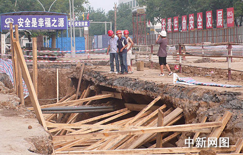 西安地铁一号线洒金桥站施工塌方现场