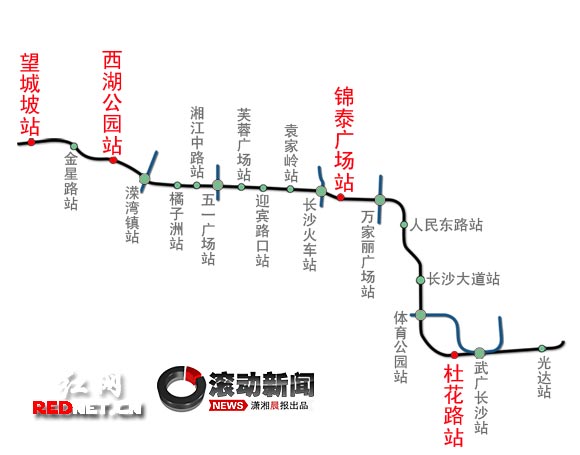 长沙地铁2号线一期工程,西端起于汽车西站东南角,线路沿游园东路布设,西端预留向西延伸的条件。