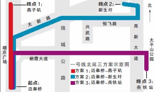 南京市地铁网络发言人称,一号线北延线工程可行性研究工作目前正在抓紧推进。在研究过程中,分别从线路长度、沿线用地性质、客流情况、行车运营组织等诸多方面进行比较,目前对一号线北延线线路走向研究了3种方案: