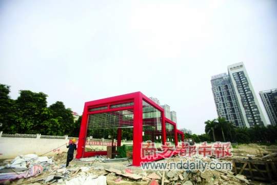 据南方都市报消息:昨日在广佛地铁南桂路站,见到一座红色的出入口已矗立在工地上,显得简洁、时尚。出入口以玻璃材质为主,形态通透,由三个大小不一的玻璃盒子组成。走进入口,有上、下两道楼梯,其中上行楼梯是电梯,电梯已进入安装收尾阶段。据一施工人员介绍,这座电梯高9米多。