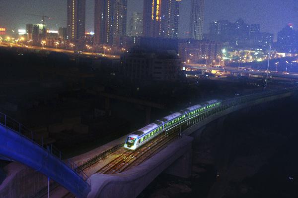 据新华社消息:7月29日晚,武汉轨道交通一号线轻轨列车在市区穿行。当日,武汉轨道交通一号线全线通车试运行,这是包含轻轨和地铁两部分的武汉轨道交通建成通车的第一条线路。据武汉地铁集团介绍,此次通车的轨道交通一号线二期工程和2004年建成运营的一期工程全线贯通后,总里程28.9公里,设26个站点。