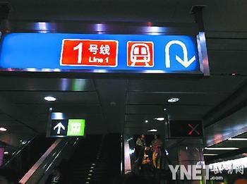 昨天上午,记者来到4号线西单站,大批前往1号线的乘客随着站台拱形墙壁上的红色换乘指引往站台端头走去。“以前我们只是在站台立柱上张贴了换乘标识,现在用了连贯性的指引带,更加醒目。”工作人员告诉记者。在站台端头,记者还看到了一个有趣的标识,这个箭头意为“调头”,出现在地铁站里还是头一遭。“西单站很大,有时候选错了乘车方向,很容易转向,所以我们专门在端头装了调头灯箱。”工作人员说,目前这两种新标识仅在西单站出现。