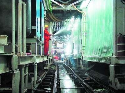 在五一大道的迎宾路口站下,工作人员正在对施工现场进行清洗