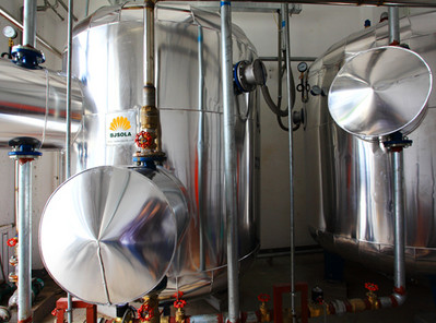 地铁9号线车辆段太阳能热水系统,采用 U 型管集热器、太阳液强制循环换热,储水设备为闭式承压水罐,减少细菌产生;无需增压设备,出水压力接近市政自来水压力。辅助热源采用美国进口 RHEEM(瑞美)燃气炉。