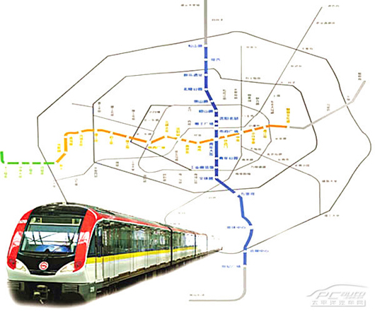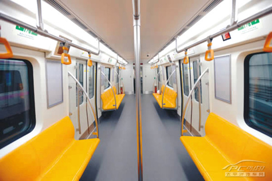 地铁二号线一期工程贯穿金廊沿线,北起三台子,南至全运路,全程共有19处车站,按计划,今年年底将会全面通车,进入试运营阶段。与一号线有所不同的是,为了与金廊沿线形成呼应,地铁二号线的车厢外表和座椅都被设计成了金黄色,车厢内不仅增加了垂直扶手,还为座椅增加了电加热设备。