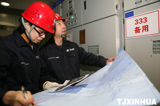 12月13日,国家电网的工作人员在严格按照图纸进行检查。