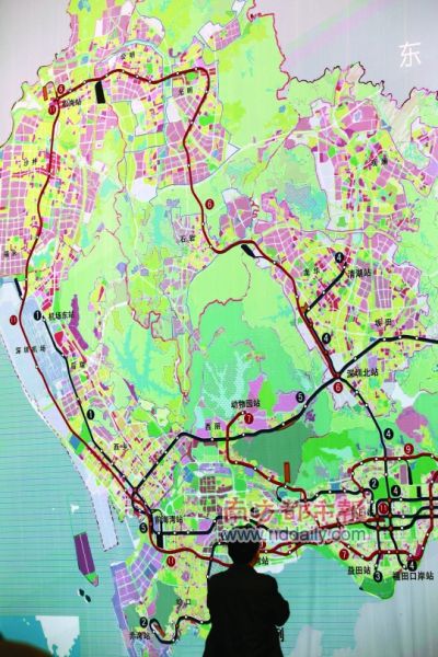 地铁三期工程开工,一名市民在规划图前研究深圳未来的轨道规划。