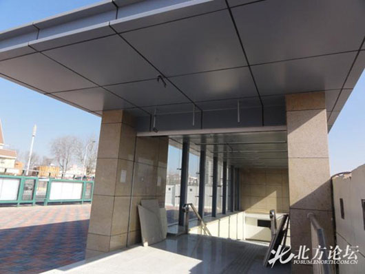 春节临近,网友记者来到地铁三号线水上公园北道站进行探访,此站已经基本建成完工。根据网友记者拍摄的照片显示,该地铁站马路两边的出口已经建成,施工的工人已经撤离,预计春节过后,这里将进行一些扫尾工作。2012年,天津地铁三号线将投入运营。