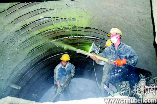 江底挖通道,慢工出细活。李刚说,通道长6。8米,每前进1米后,都需喷射混凝土浆,以固定通道的结构。
