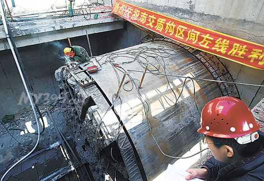 施工人员正在进行移走盾构机的准备工作。记者 李毅 摄