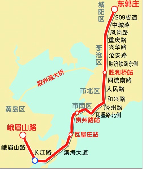 据了解,今年5月,环保部门对地铁1号线启动首次环评。环评公告显示,青岛地铁1号线起自黄岛峨眉山路与长江路交叉口,沿长江中路、长江东路、滨海大道、跨海向北进入青岛主城区,线路进入主城区后沿费县路向东左转穿过青岛火车站广场,沿即墨路北侧、胶州路、和兴路、人民路、四流南路、胶济铁路东侧、仓安路、兴华路、重庆路、风岗路、中城路、209省道至东郭庄(S209和青新高速交叉处西南处)。共设车站39座,其中地下站38座,高架站1座,平均站间距1569米。