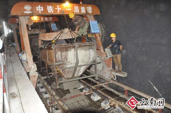 云南网讯(记者 赵岗 摄影报道)7月10日晚,昆明地铁首期工程北段北站工地,轨道浇筑正在如火如荼进行,整段工程已完成27公里线路,目前仅余14公里线路。项目部经理刘斌表示,今年9月底昆明地铁首期工程北段将实现轨通。