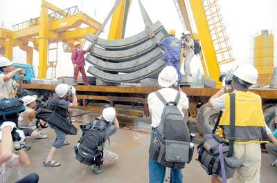 五十多名工业摄影家,背负几十斤重的大包小包、长枪短炮,历时一个多月,下竖井钻隧道,踏遍了正轰轰烈烈建设的地铁三号线三十多个工地,用镜头和汗水记录了地铁建设宏伟场面。这是记者昨天从广州市地铁总公司获悉的。