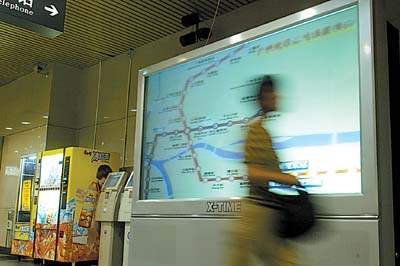 昨天,有读者向本报记者报料,摆在广州东站地铁站D、E出口之间的一台“巨型彩电”看上去很“威水”,不像普通“电视墙”。记者随即赶到现场,通过采访了解到,这是一台造价高达150万元的大屏幕彩电(见图,周馨摄),其屏幕大到150英寸(381厘米),据称是目前全球最大单台彩电。而这种大屏幕彩电目前仅投放到广州,预计整个广州一、二号线地铁站的投放量将达到70台。