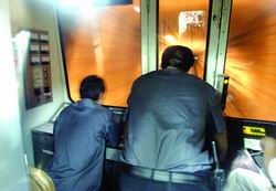 警察在地铁车头内借灯光巡视隧道内是否有人