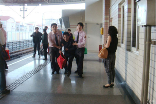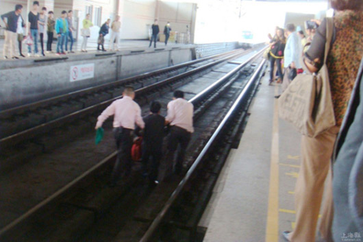 图说:据中年男子现场透露,他因腹部疼痛,才不慎坠入轨道内。上海滩网友@快乐DD冬眠摄