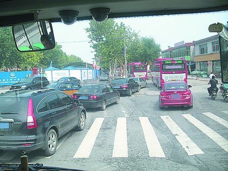 记者体会:这一段路因受地铁施工影响不大,路宽理想,私家车可以“自由发挥”速度优势,但在等红灯排队时,就只能眼睁睁看着公交车沿专用道从身边超过,另外,此段路两侧商超云集,停车又是个大问题。