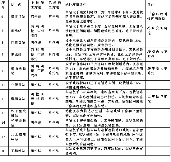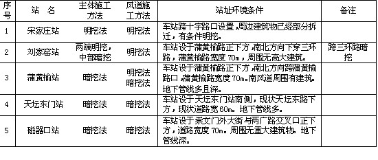 各地下车站采用的施工方法见表2。三. 地铁五号线采用的暗挖工法及结构型式论述