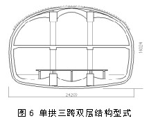 此型式应用于蒲黄榆车站。车站采用复合衬砌结构型式,顶梁、底梁为钢筋混凝土结构,立柱为钢管柱。隧道断面尺寸为22.6m×16.3m(宽×高)。
