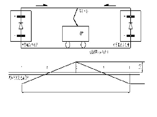 图 3 双边供电,机车在线路中部取流的杂散电流分布示意图