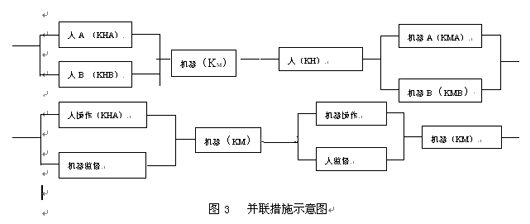其二,从人机系统的可靠度来分析,往往人机系统并非单纯的串联系统,而是串并结合的系统。对于某些重要环节,我们可以采取并联措施来提高其可靠度,如图3所示。这些措施,在地铁系统均有大量应用案例。