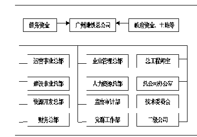 从广州地铁的公司框架可以看出,广州地铁为集中一体化管理模式,总公司集建设、运营、沿线资源开发等各项职能为一体,根据每个职能设立部门。