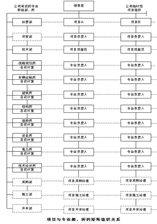 下面即结合项目的特点,论述城市轨道交通设计项目的矩阵式管理方式。