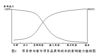 咨询设计对项目成功的影响,主要体现在设计方案优化、造价控制和质量保证方面。项目参与者对项目品质和项目成本的影响能力,可从图2看出,即在项目的开始(可研与设计阶段)时影响力最高,随着项目的继续,影响力逐渐变小。这是因为越往后项目变更所需的费用越高。所以,在设计阶段,项目可以较小的投入,却能实现对项目的高品质的控制。