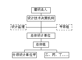 a 项目咨询设计的组织结构如图3。建设项目法人聘请设计技术决策机构、设计监理和专家组,后者代表业主对设计咨询成果进行评审决策,总体设计单位是设计咨询工作执行的主体,对整个项目各子系统起协调和统一的作用,分项设计单位可根据情况设置一个和多个,总体组由多个设计单位的资深专家组成。这样的层次结构能明确执行层和决策在技术和管理上的归属。