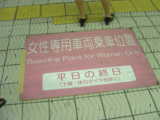 来日本之前就知道著名的地铁“黑手”,也知道现在国内有的城市也开始关注车厢内性骚扰的现象了。到了这里,发现有的地铁站上在地面上标记着“女用车厢”的字样,一下就明白,原来这节车厢是专门给女性使用的,而这样的字样在站台上一共有6处,确实是个好办法。