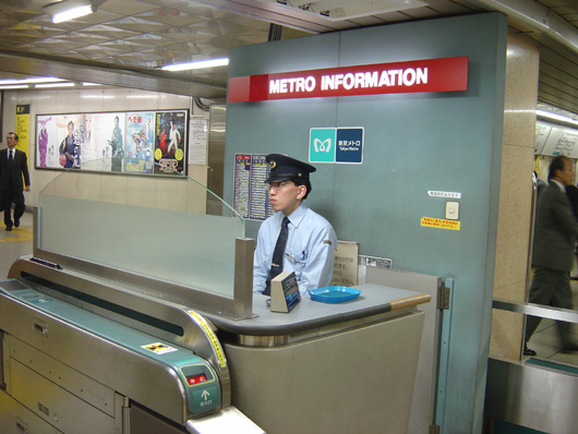 几乎每个站台都会有一个information,有一个穿者制服的工作人员为过往的乘客提供帮助,有时候还可能是一个计算票价的房间,里面有三四个人。值得一提的是,每当任何乘客向他(或他们)询问有关事宜的时候,他总是站立着,并向前倾斜着身体,满脸笑容地耐心解释。