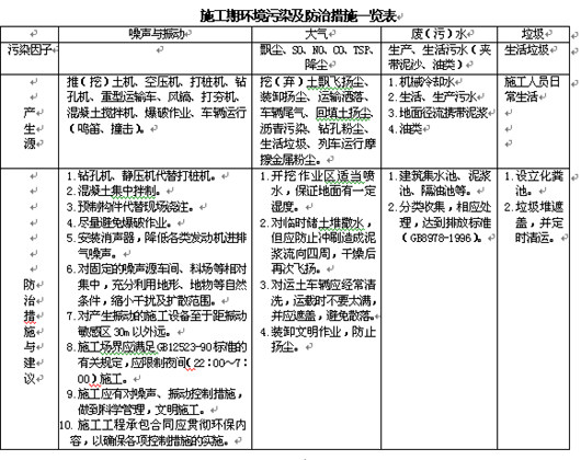 明挖法施工要从噪声控制、减少扬尘、废水废物处理几个方面减少对环境的影响。详见一览表