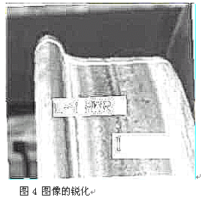 图像的锐化处理主要是突出边缘图像信息,使图像更清晰(采用高通虑波),其设计方法有利于进一步图像的二值化处理。如图4所示。方法如下: